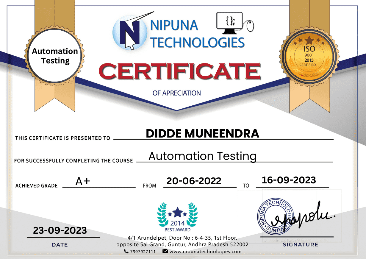 ✓Get Certified from the Best Automation Testing Course Institute in Vijayawada